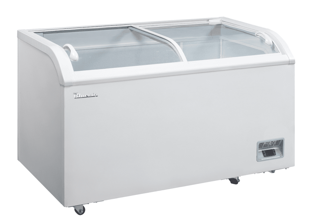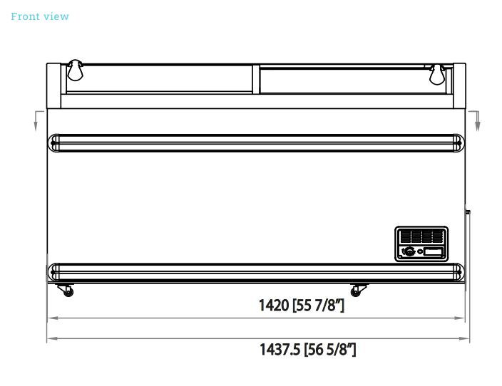 Ice Cream Merchandiser/Chest Freezer, 56-5/8″W x 30″D x 33″H, bottom mounted self-contained refrigeration, 17.66 cu. ft., digital temperature controls, temperature range -10°F ~ -0°F, (2) locking sliding tempered glass doors, (4) epoxy coated wire baskets, interior LED lighting, manual defrosting, drain hole, painted galvanized exterior, aluminum interior, casters, R290 Hydrocarbon refrigerant, 1/2 HP, 115v/60/1-ph, 2.4 amps, cord with NEMA 5-20P, cETLus, ETL-Sanitation