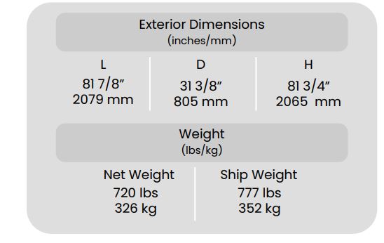 Exterior Dimensions ( L x D x H ): 82 x 31 1/2 x 81 1/4 inch