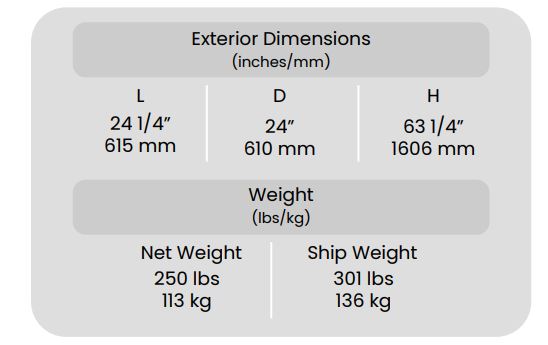 Exterior Dimensions ( L x D x H ): 24 1/4 x 24 x 63 1/4 inch