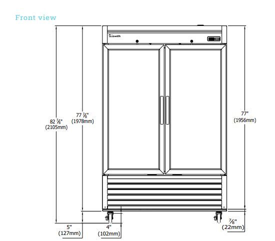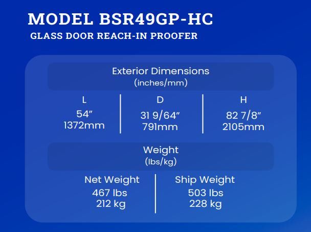 D-Series Refrigerator/Proofer, reach-in, two-section, 49 cu. ft. capacity, bottom-mount self-contained refrigeration, (2) full-height hinged glass doors (locking), door open alarm, (8) adjustable wire shelves, digital controls, LED interior lighting, stainless steel interior & exterior, 4″ swivel casters (2 braked), R290 Hydrocarbon refrigerant, 1/2 HP, 115v/60/1-ph, 5.6 amps, cord with NEMA 5-15P, cETLus, ETL-Sanitation