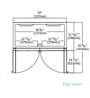 Exterior Dimensions ( L x D x H ) 54 x 32 7/16 x 82 3/8 inch