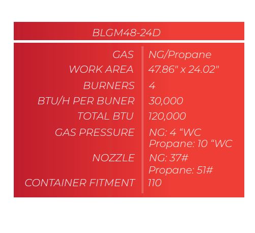 This griddle features powerful 30,000 BTU burners with ever-ready pilots, a durable 3/4″ stainless steel cooking surface, and adjustable legs. It comes standard with natural gas configuration, includes an LP conversion kit, and boasts a full-length removable drip pan. Built with high-quality stainless steel, it offers both performance and easy maintenance for professional kitchens.