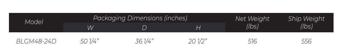 Exterior Dimensions ( L x D x H ): 48″ W x 33 1/2″ D x 15 1/4″ H