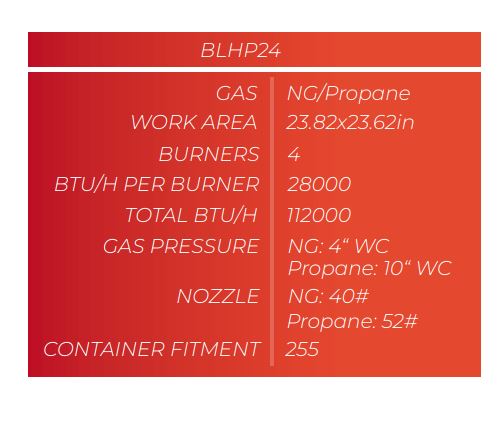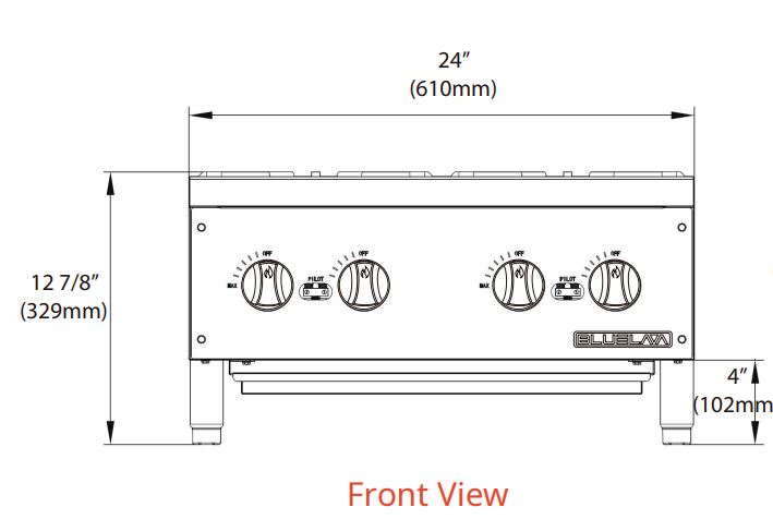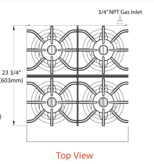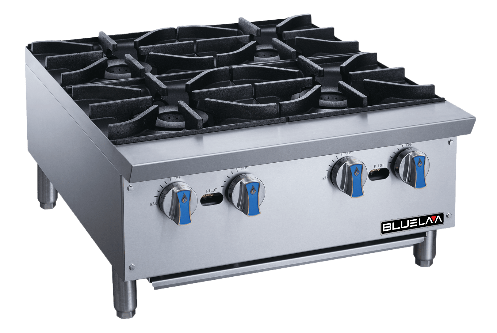 Hot Plate, countertop, heavy duty stainless steel construction, four lift-off burner, gas (24″W x 28-3/4″D x 13-3/8″H), 112,000 BTU/H