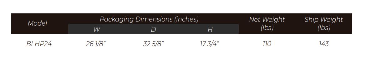 Exterior Dimensions ( L x D x H ): 24″ W x 28 3/4″ D x 12 7/8″ H