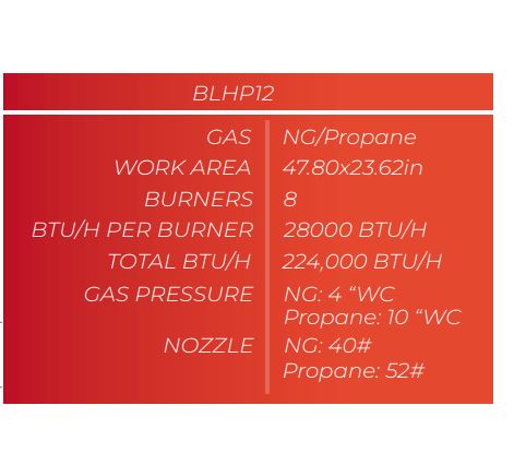 Pressure: NG: 4″ WC / Propane: 10″ WC