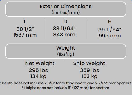 Exterior Dimensions ( L x D x H ) 60 3/8 x 37 9/32 x 44 1/4 inch