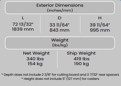 Exterior Dimensions ( L x D x H ) 72 3/8 x 37 9/32 x 44 1/4 inch