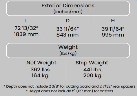 Exterior Dimensions ( L x D x H ) 72 3/8 x 37 9/32 x 44 1/4 inch