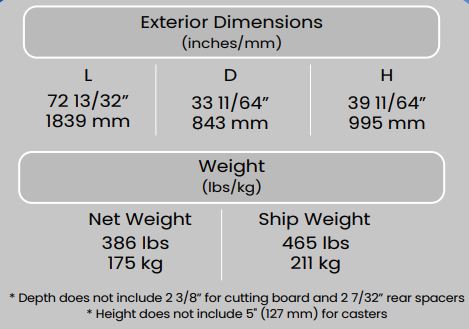 Exterior Dimensions ( L x D x H ) 72 3/8 x 37 9/32 x 44 1/4 inch