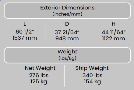 Exterior Dimensions ( L x D x H ) 60 3/8 x 37 9/32 x 44 1/4 inch