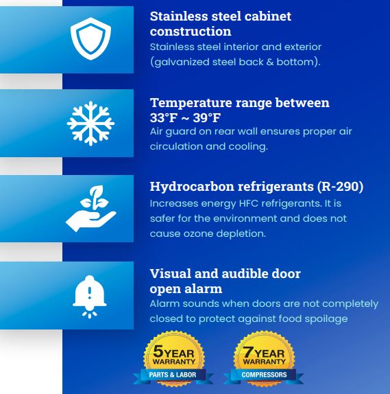 It’s very to keep this unit functioning to your standards, thanks to a self-diagnostic digital temperature control and monitor system. Check the clear digital display for the current temperature to verify and adjust accordingly. There is a control for automatic evaporator fan motor delay plus a warning alarm that alerts you when the unit has been left open.