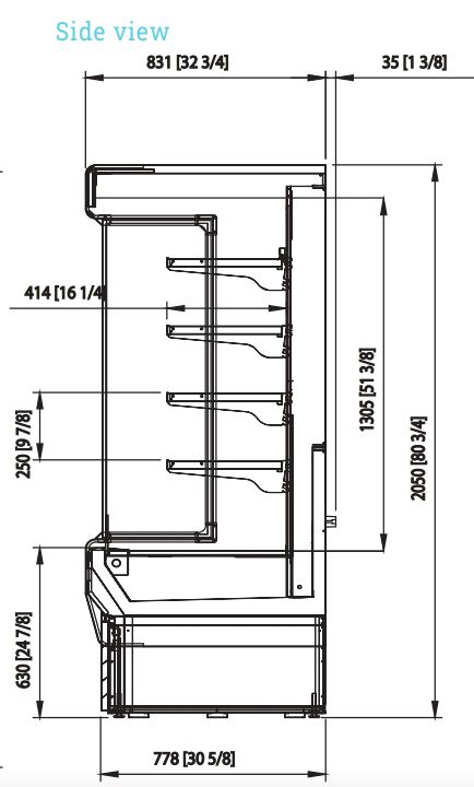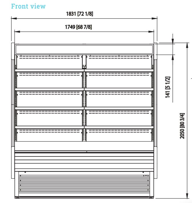 Open Display Case, 72-1/16″W, 41.0 cu. ft. capacity, bottom mount self-contained refrigeration, open front, glass side panels, (4) adjustable shelves, LED interior lighting, rear air guard, night curtain, pre-coated steel exterior, non-peel powder-coated steel interior, 1HP, 115-230v/60/1-ph, NEMA L14-20P, cUL, UL, ETL-Sanitation (It requires 8-12 weeks leadtime for white color)