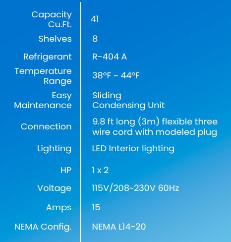 With a commitment to maintaining environment-friendly commercial refrigeration, Blue Air uses an R404A refrigerant with zero depletion level to cool the contents without a negative impact on the environment.