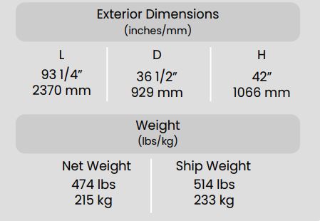 Exterior Dimensions ( L x D x H ) 93 1/4 x 36 1/2 x 42 inch