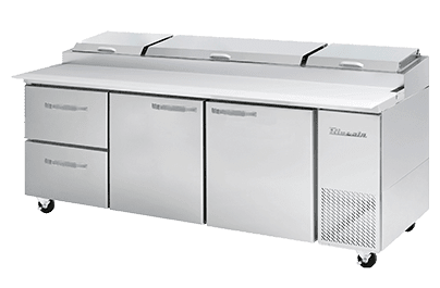 This Blue Air Refrigerated Pizza Prep Table provides a wide durable cutting board for preparing your yummy pizzas while offers a spacious refrigerated storage cabinet underneath to keep your ingredients fresh and ready to serve any second. Stainless Steel covers the exterior and interior of the pizza prep tables with the inside being cooled by a hydro-carbon R290 refrigerant keeping food at safe temperatures between 33 degrees F and 41 degrees. Each pizza prep table comes with casters installed making moving it around simple as ever and locking the wheels in place even easier. Everything you need will be within an arms reach away – with it’s compact yet resourceful design.