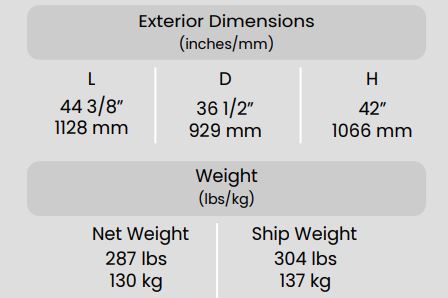 Exterior Dimensions ( L x D x H ) 44 3/8 x 36 1/2 x 42 inch