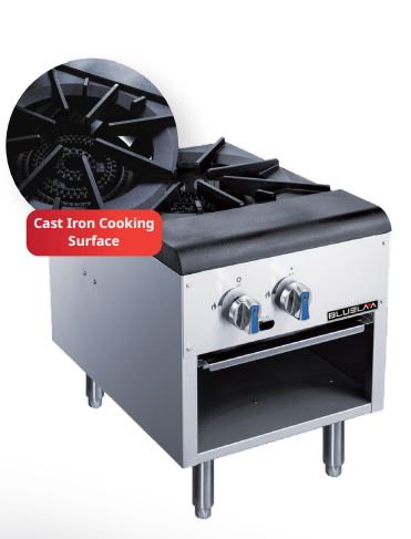 This 80,000 BTU Gas Stock Pot features a heavy-duty cast iron 3-ring burner with manual controls for inner and outer rings. It boasts durable stainless steel pilots and tubing, cast iron top grates for stability, and runs on natural gas with the option to convert to LP. Ideal for commercial kitchens, this powerful unit offers efficient, versatile cooking for large-scale food preparation.