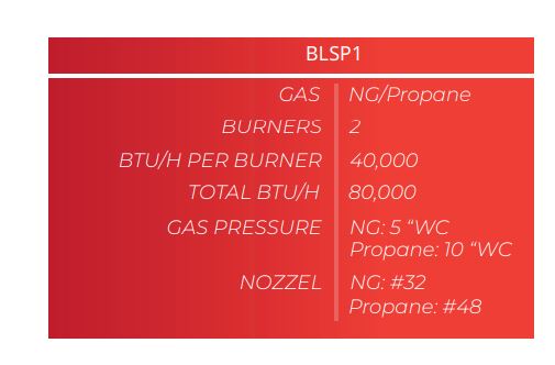 Pressure NG: 5″ WC / Propane : 10″ WC