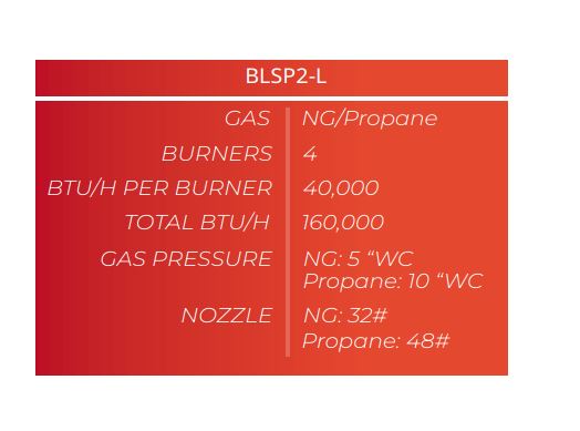Pressure NG: 5″ WC / Propane : 10″ WC