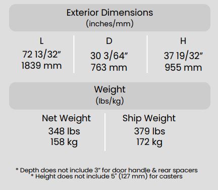 Exterior Dimensions ( L x D x H ) 72 3/8 x 33 1/32 x 42 1/2 inch