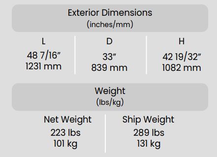 Exterior Dimensions ( L x D x H ) 48 3/8 x 33 1/32 x 42 1/2 inch