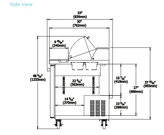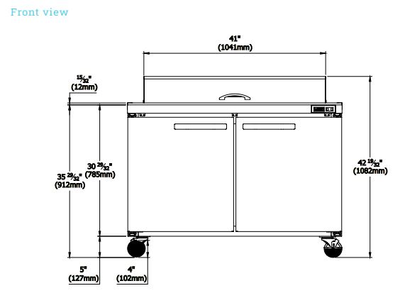 The prep table has a sliding condensing unit that eases the important process of cleaning. It also comes standard with four (4) 4″ diameter swivel casters with two (2) front brakes for mobility.