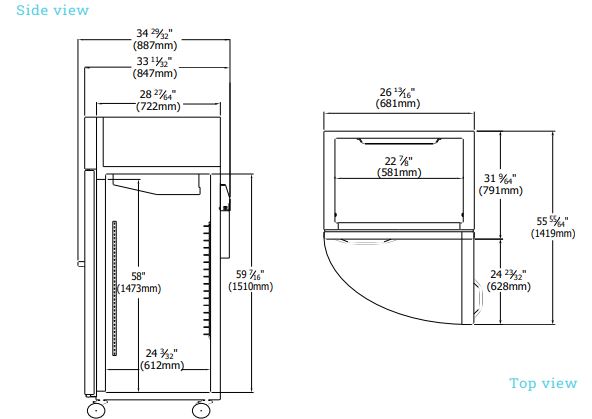 This model is easily operated from a digital monitoring system where you can view and set the temperature, control defrost cycles, and manage evaporator fan motor delay. A sliding condensing unit and four (4) 4″ diameter swivel casters with front brakes make for easy cleaning.