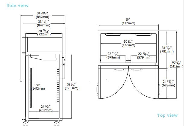 This model is easily operated from a digital monitoring system where you can view and set the temperature, control defrost cycles, and manage evaporator fan motor delay. A sliding condensing unit and four (4) 4″ diameter swivel casters with front brakes make for easy cleaning. With a self-contained refrigeration system, this unit will simply need to be plugged in to get to work!