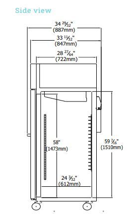 This model is easily operated from a digital monitoring system where you can view and set the temperature, control defrost cycles, and manage evaporator fan motor delay. A sliding condensing unit and four (4) 4″ diameter swivel casters with front brakes make for easy cleaning. With a self-contained refrigeration system, this unit will simply need to be plugged in to get to work!