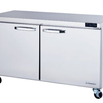 Two-section, 60-3/8″W, 16.7 cu. ft. capacity, rear-mounted self-contained refrigeration, -10° to 0°F temperature range, (2) self-closing swing doors, metal door handle, open door alarm, (4) adjustable wire shelves, self-diagnostic digital temperature control & monitor system, stainless steel interior & exterior, (4) 4″ swivel casters (2 braked), R290 refrigerant, 1/2 HP, 115v/60/1-ph, 6.2 amps, cord with NEMA 5-15P, cETLus, ETL-Sanitation