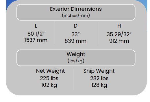 Exterior Dimensions ( L x D x H ): 60 3/8 x 33 1/16 x 35 7/8 inch
