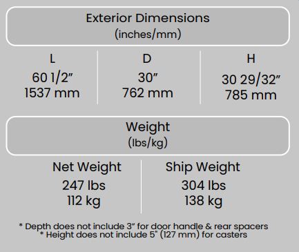 Exterior Dimensions ( L x D x H ): 60 3/8 x 33 1/32 x 35 7/8 inch