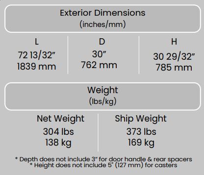 Exterior Dimensions ( L x D x H ): 72 3/8 x 33 1/32 x 35 7/8 inch