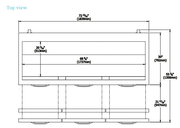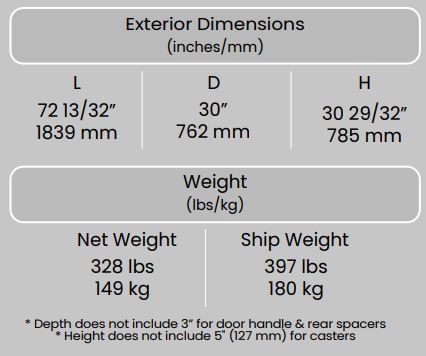 Exterior Dimensions ( L x D x H ): 72 3/8 x 33 1/32 x 35 7/8 inch