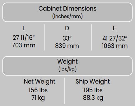Exterior Dimensions ( L x D x H ) 27 1/2 x 33 1/32 x 41 55/64 inch