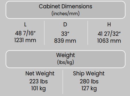 Exterior Dimensions ( L x D x H ) 48 3/8 x 33 1/32 x 41 55/64 inch