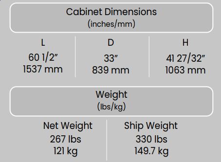 Exterior Dimensions ( L x D x H ) 60 1/2 x 33 1/32 x 41 55/64 inch