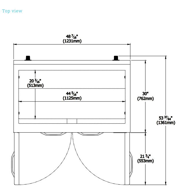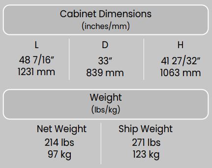 Exterior Dimensions ( L x D x H ) 48 3/8 x 33 1/32 x 41 55/64 inch