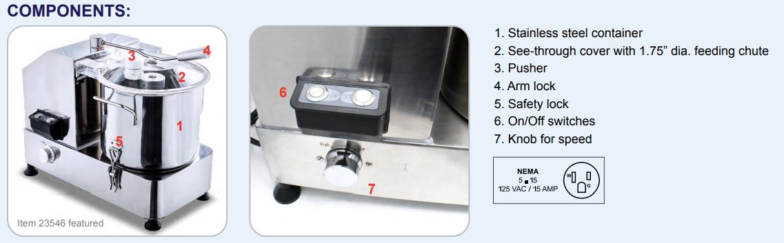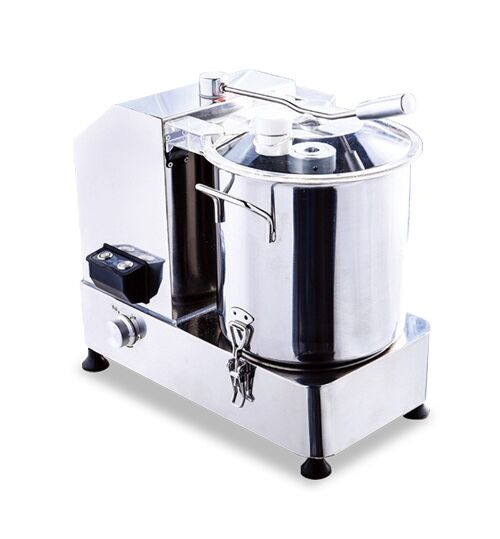 This machine is made with 304 stainless steel, it ensures that any components that touch food are clean. The knives are made with 4Cr13 stainless steel, which makes the knives more sharp and efficient. There is also a stainless steel bottom which can withstand heated product.