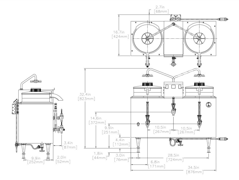 The BUNN U3 coffee urn (20500.0000) can brew 16.3 gallons of coffee, instant tea, or hot chocolate in an hour, and it connects directly to a water supply and has a large, heated water tank. Depending on the size of the crowd, this urn can brew a half-size or full-size batch. When brewing, hot water can be drawn from the tank and dispensed from the front faucet, without affecting coffee quality.
