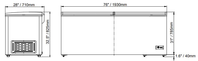 DIMENSIONS (WDH) – 76″ x 28″ x 32.5″ / 1930.4 x 770 x 870 mm