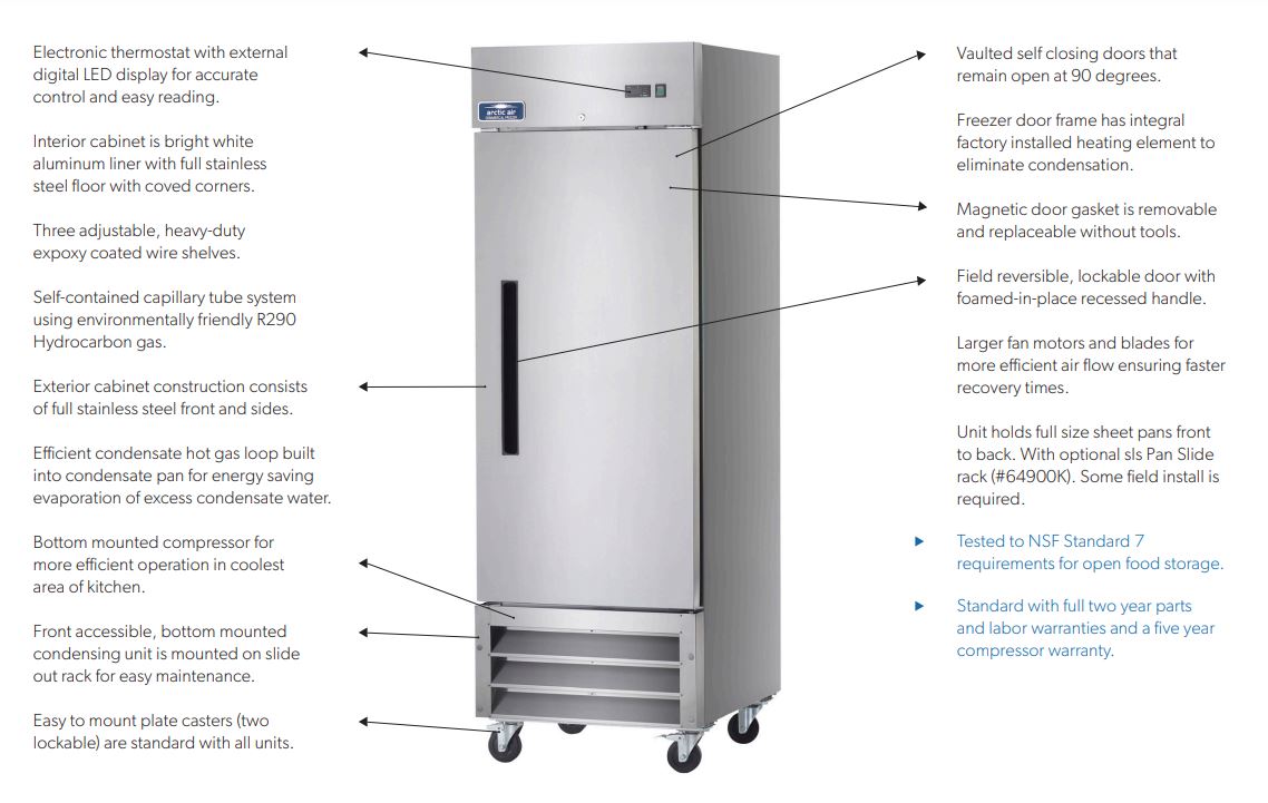 Arctic Air’s solid door reach-in refrigerators and freezers are designed to bring you real, commercial-grade performance at a truly incredible value. All Arctic Air commercial products are tested to NSF levels and must pass numerous quality control inspections throughout the manufacturing process.