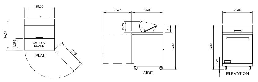 The exterior of our ref. prep table models are beautifully designed in a smooth stainless-steel finish for a professional look that you would find hard to limit in any commercial application. More importantly, our products have many features that are desired in today’s commercial foodservice market. Features that include an inner door liner that is constructed of a hi-impact ABS polymer with an irregular shaped surface along with a vaulted design that extends beyond the door opening when shut. This door liner allows the end user lower compressor run times over the life of the unit due to its irregular surface working in conjunction with the vaulted door liner, other features include hi-grade stainless steel floor with coved corners, high output yet electrically efficient fan motors, effective “cool air over” pan-well design assures the end user that the exposed pan well will stay within the legal temp. limits for safety when installed properly, electronic micro-processing digital temperature control with external digital display, bottom mounted compressor along with a front accessible bottom mounted condensing unit for easy maintenance/cleaning/servicing.