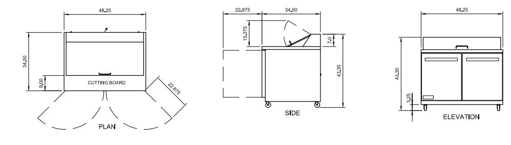 The exterior of our ref. prep table models are beautifully designed in a smooth stainless-steel finish for a professional look that you would find hard to limit in any commercial application. More importantly, our products have many features that are desired in today’s commercial foodservice market. Mega-depth ref. prep tables offer an additional 3rd row of pans, an inner door liner that is constructed of a hi-impact ABS polymer with an irregular shaped surface along with a vaulted design that extends beyond the door opening when shut. This door liner allows the end user lower compressor run times over the life of the unit due to its irregular surface working in conjunction with the vaulted door liner, other features include hi-grade stainless steel floor with coved corners, high output yet electrically efficient fan motors, effective “cool air over” pan-well design assures the end user that the exposed pan well will stay within the legal temp. limits for safety when installed properly, electronic micro-processing digital temperature control with external digital display, bottom mounted compressor along with a front accessible bottom mounted condensing unit mounted on a slide-out rack for easy maintenance/cleaning/servicing.