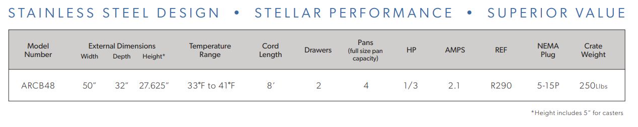 Arctic Air’s refrigerated chef bases are designed to bring you real, commercial-grade performance at a truly incredible value. All Arctic Air commercial products are tested to NSF levels and must pass numerous quality control inspections throughout the manufacturing process.