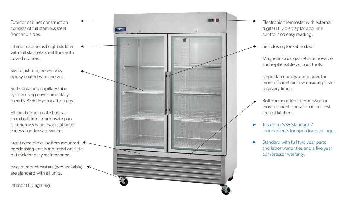 Arctic Air’s glass door reach-in refrigerators are designed to bring you real, commercial-grade performance at a truly incredible value. All Arctic Air commercial products are tested to NSF levels and must pass numerous quality control inspections throughout the manufacturing process.