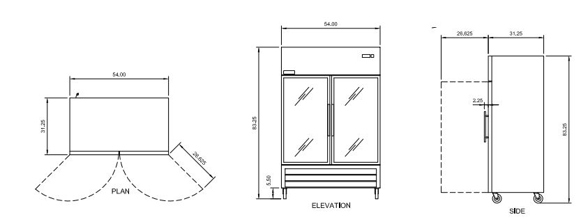 External Dimensions: 54″ W x 31.25″ D x 83.25″ H