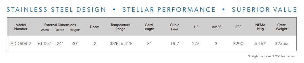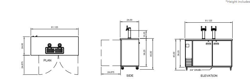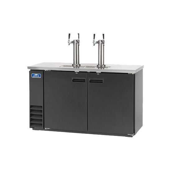 The exterior of our reach-in models are beautifully designed in a black vinyl coated finish for a professional look that you would find hard to limit in any commercial application. More importantly, our products have many features that are desired in today’s commercial foodservice market. Features that include mirror finish stainless steel interior/ hi-grade stainless steel floor with coved corners/Re-enforced door threshold and interior base to handle the rigors of kegs being loaded and un-loaded, Led light/”cool air” duct located on the interior top that runs the full length with ventilated holes, this provides even cooling across all-doors and the duct will not allow air flow blockage due to higher bottles/etc. that would normally be in the way and compromise consistent cooling. The “cool air” duct also acts as a conduit for the “cool air” tubes that run inside the duct and provide “cool air” delivery to both beer towers. Two beer faucets per tower and (2) towers per unit, high output yet electrically efficient fan motors, electronic micro-processing digital temperature control with external digital display, bottom mounted compressor along with a front accessible bottom mounted condensing unit for easy maintenance/cleaning/servicing.