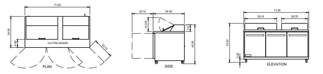 External Dimensions: 71.5″ W x 34.5″ D x 43.3″ H